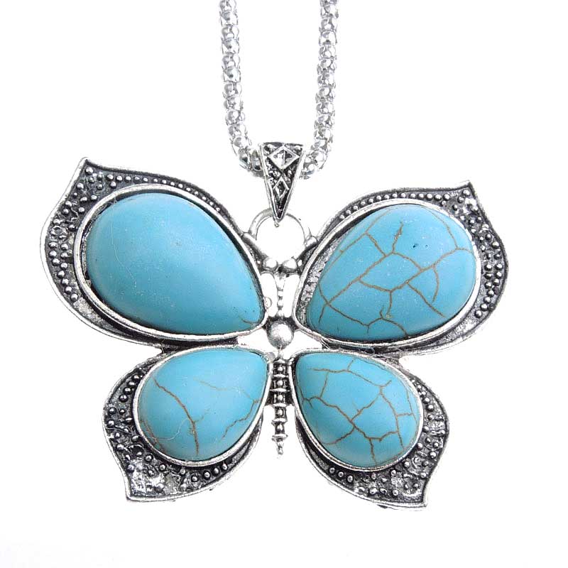 Подвеска с гальваническим покрытием под чернённое серебро с прессованной бирюзой, длина 65+5см., украшение 6*4.5см, Арт. RA066-KO, категория "Альфа".